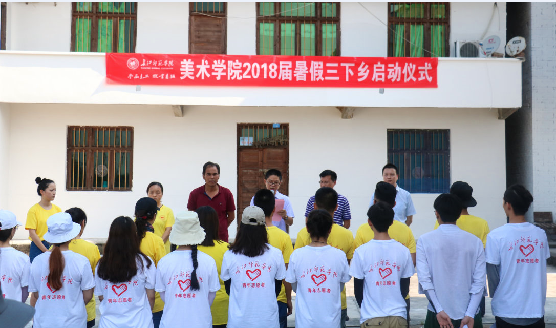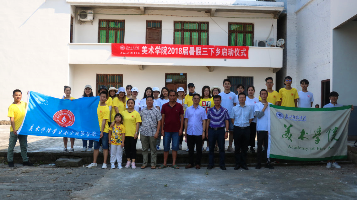 7月13日上午9时,美术学院2018年三下乡社会实践活动启动仪式在涪陵区蔺市镇连二村举行。参加此次启动仪式的有涪陵区蔺市镇镇长谢成洪,美术学院院长傅小彪、美术学院党总支副处级组织员陈柏材,蔺市镇连二村村支部书记冉茂明,教师代表闫丹婷以及全体三下乡志愿者。启动仪式由美术学院团委书记袁黎主持。