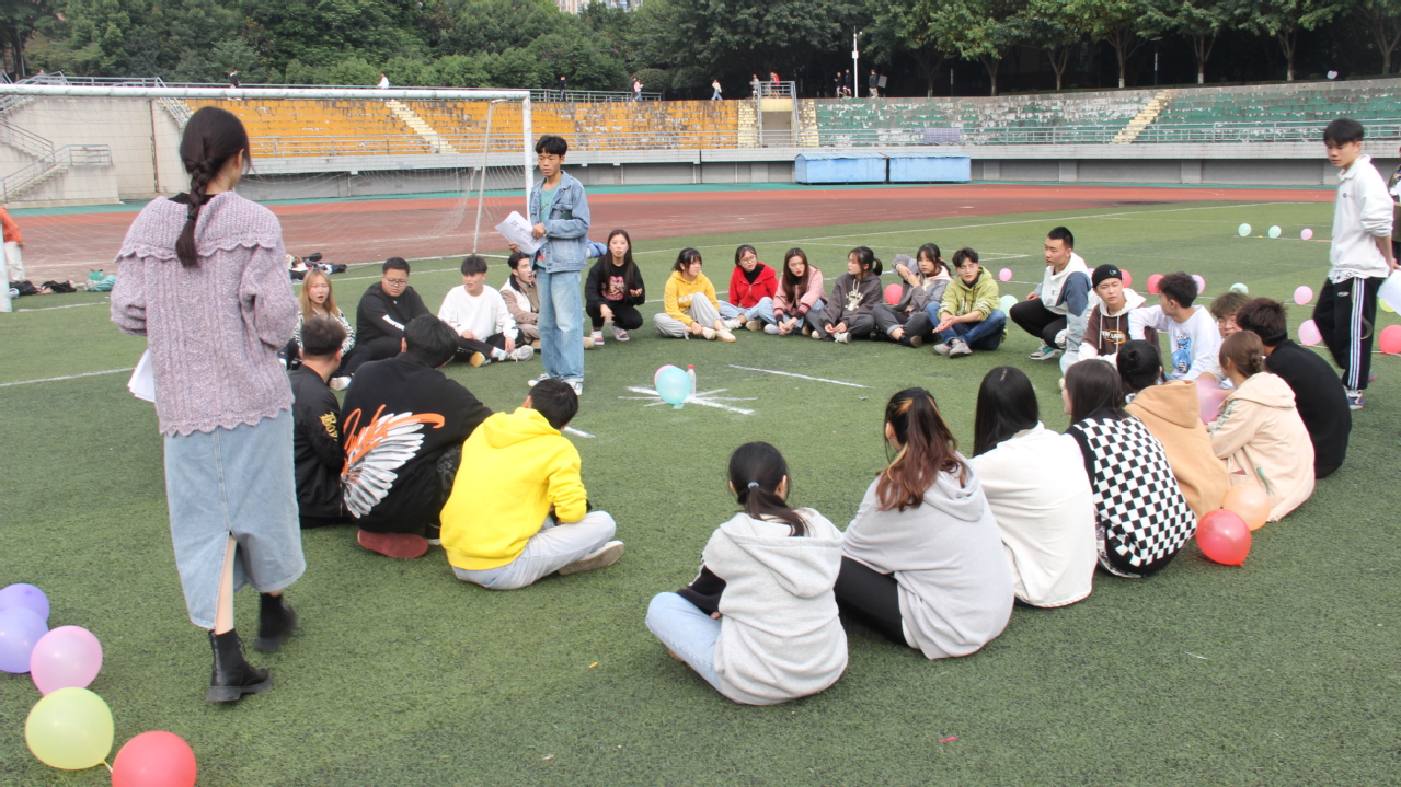 “我们一起吧!”“哎呀,你竟然超过我了。”活动现场其乐融融,成员们体验到团结合作、共克难关的团队精神。同学们围着场地,你追我赶,脸上洋溢着快乐的笑容一起在操场上放飞自我。除了活动的节目外,同学们还组队顶起气球玩。最后经过重重比拼,获得活动第一名的同学会由工作人员颁发奖品。