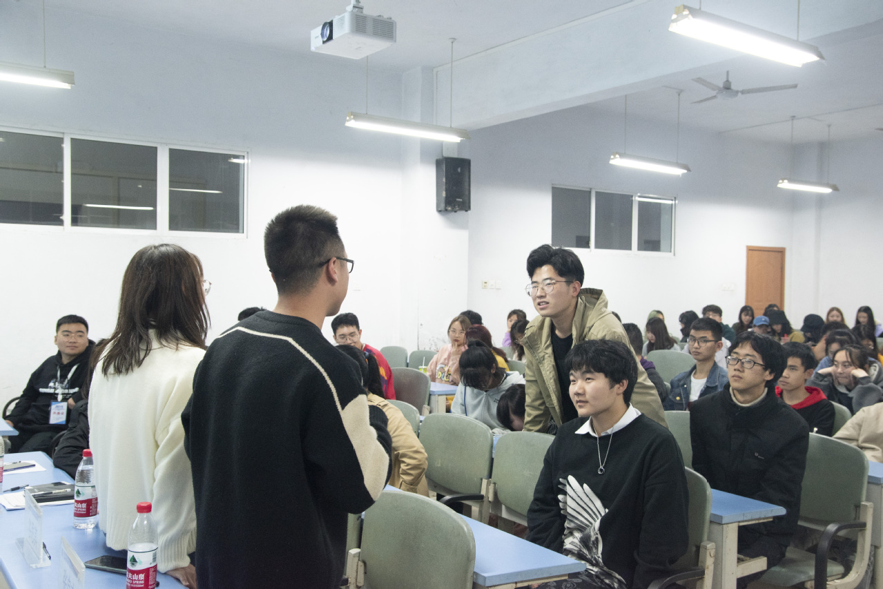 分享经验之后,由同学们提出自己的疑惑,在此过程中同学们积极发言提问,三位同学为大家耐心地解答了疑惑。最后由李金花对此次交流会进行总结,建议大家要抓住这次机会,把握好自己未来发展的方向和道路。