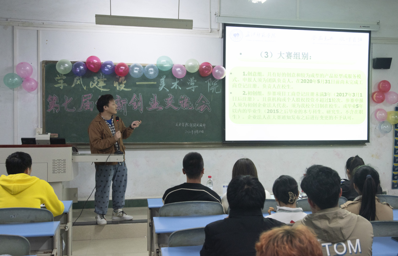 为了培养同学们的创新创业精神,美术学院创新发展部于1110日晚上7点在正心楼108教室开展了“第七届创新创业交流会”。出席此次活动的有学生会主席钱成霖、团委副书记李金花、党支部办公室主任谷思其、优秀同学张良杰和卓曲。