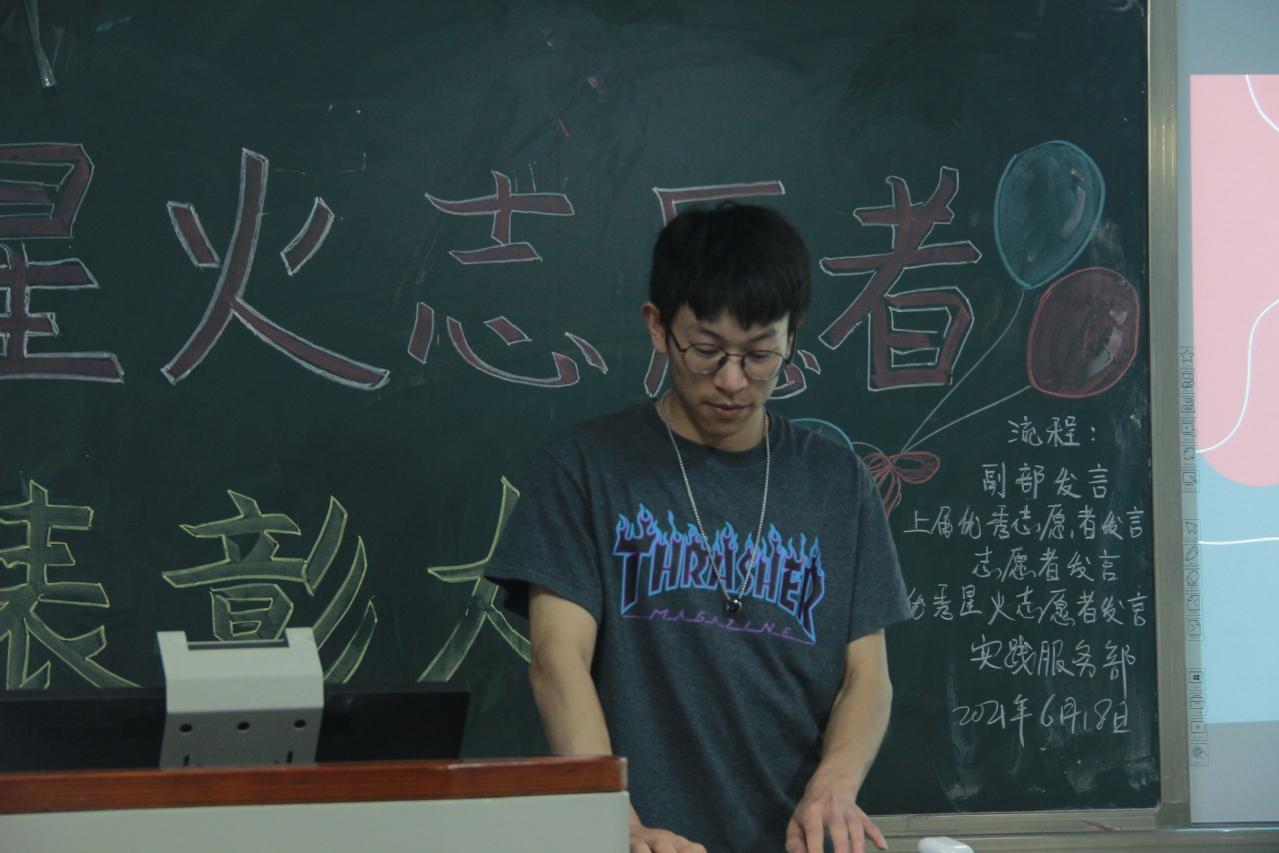 会议开始,先由实践服务部副部长陈媛煜发言,分享了她做星火志愿者的感受和经历。她说道在每次志愿服务活动中,总能感受到帮助别人的乐趣,也丰富了人生的经历,每一次都是美好的回忆。接着,由上届的优秀星火志愿者曹阳银分享他的经验。他与大家分享了加入星火志愿者的初衷和自己的收获。
