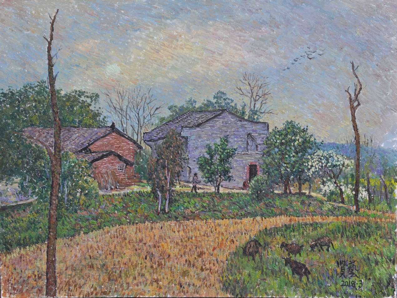 “作为一个血管里涌动着土家人血浆的我,选择土苗风情作为表现母题是自然而然的事。”杨贤艺如是说。杨贤艺教授是出生于酉阳的土家族,年少成长于土家吊脚楼,武陵山土家族、苗族区域的地理基因在他的内心深处扎根。在位于我院执教数十载,他坚持以风景油画创作为主,钟情于乡土题材创作,朴素的山村生活景象,在他的画笔下,融成一幅幅自然与人文交汇的生动图景。30多年来,杨贤艺教授一直在乌江边上生活、工作,把笔墨运用于独特的艺术实践中,其作品绘画特征传统、质朴,大多以表现乌江流域朴实的山乡风情为主,为“乌江绘画群体”的建设和发展做出较大贡献。