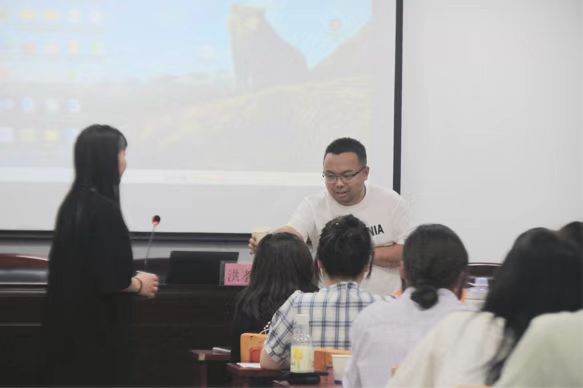 会议伊始,洪老师以“讲座前期应怎样做好准备?”引入培训主题;以模拟场景的方式,向参加培训的同学细心讲述了会议前期必要的准备:嘉宾联系、交通、场地、讲解内容……老师准备充分,将需要注意的细节讲解得十分到位。