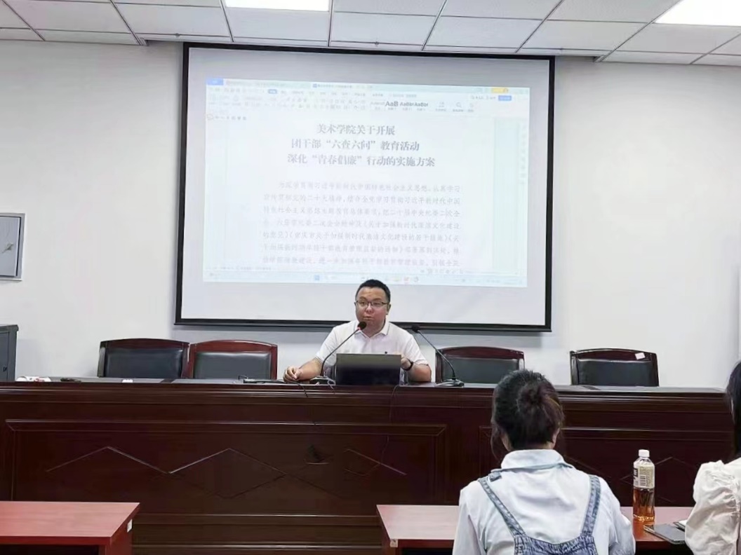 为深学笃用习近平新时代中国特色社会主义思想,认真学习宣传贯彻党的二十大精神,推动学院清廉建设,进一步加强年轻干部教育管理监督,引领全院青年干部学廉思廉践廉新风尚,廉洁从教、廉洁从业。长江师范学院美术学院于5月26号在至善南楼502开展团干部“六问六查”教育活动。本次活动由团委副书记洪孝兵主持开展,全院干部、班级团支书参与学习。
