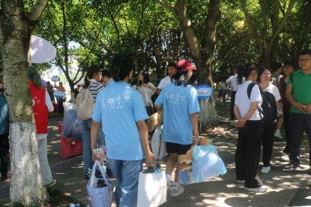 早上7点半,美术学院的师生已经穿好志愿服,翘首以盼,期待着同学们的到来,给予他们像家人般的关怀与帮助。