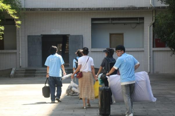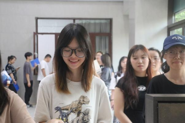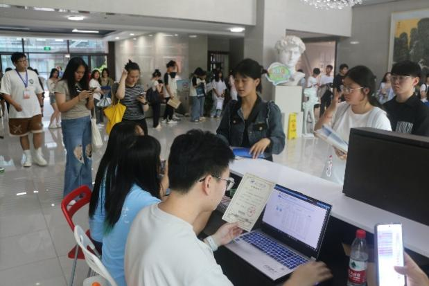 当天下午,新生办理好入住后,学院组织新生在至善北楼一楼大厅集中报到,虽然天气炎热,他们依然面带笑容,在老师和学长学姐的帮助下,报到处秩序井然,并很快完成了报到工作。