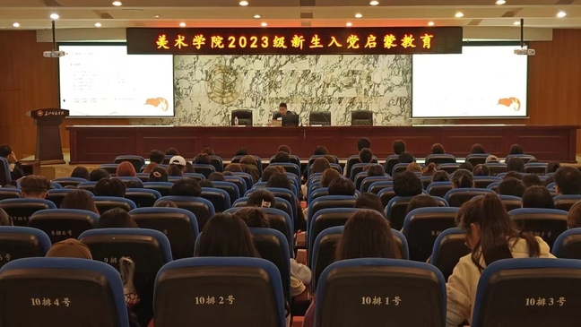 为了切实做好2023级新生入党启蒙教育工作,引导新生自觉向党组织靠拢,帮助他们了解党的基本知识、理论和入党程序,端正入党动机,增强党在青年学生中的吸引力和凝聚力,美术学院于11月2日顺利开展了2023级新生入党启蒙教育讲座。此次讲座由美术学院党委书记董顺伟主讲,学院300余名新生积极参与学习。