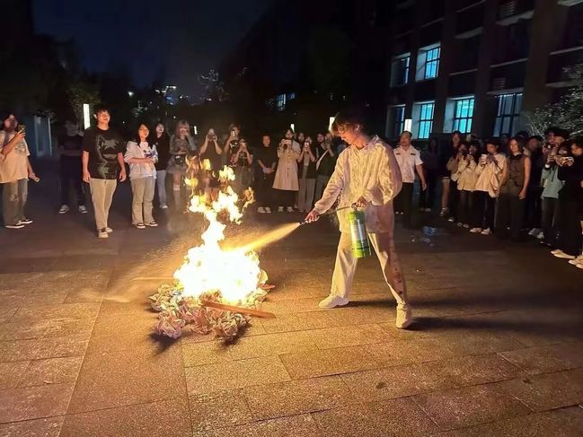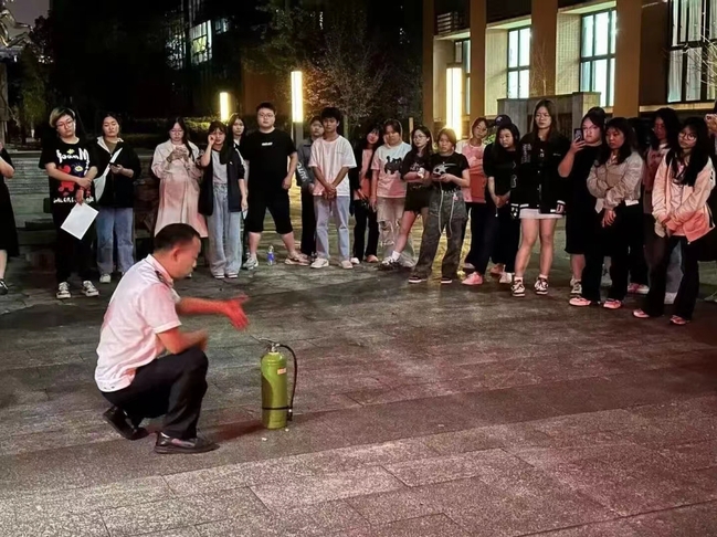 宣讲结束后,同学们还参与了使用灭火器灭火的现场演练。通过实际操作,同学们真实有效地掌握了灭火器的使用技巧,提高了自身消防安全能力。这样的实践学习不仅加强了同学们对消防知识的理解,还能够切实有效地进行自救和组织引导人员疏散逃生等消防工作。