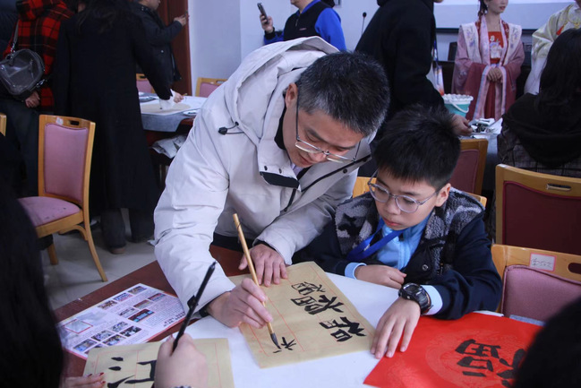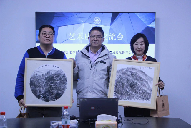 傅小彪院长带领宾巴校长一行参观了美术学院,并对学院的历史、环境、发展、规划进行了详细介绍。美术学院学生志愿者指导蒙古国中学学员体验了书法、中国画、剪纸、汉服等中华传统艺术,每位学院都现场创作了自己的作品。在座谈会上,双方就学院各专业及课程设置、奖学金、“云端艺课”项目深入交流,蒙方热情邀请傅小彪院长带队到蒙古国开展写生、展览等考察交流。