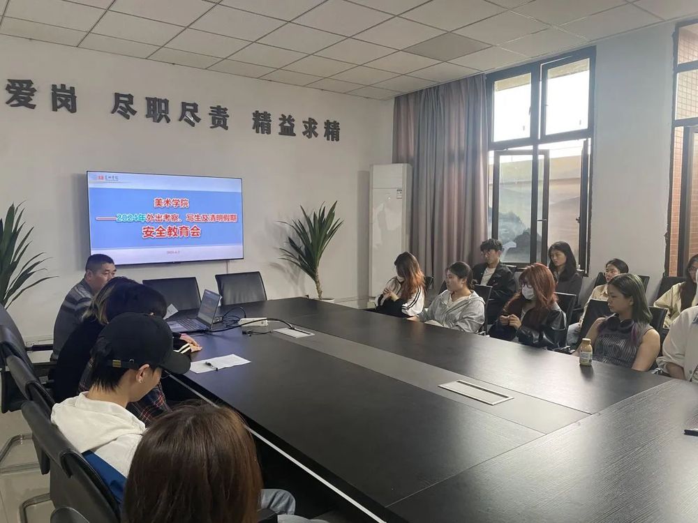 2024年4月2日,美术学院举行了2024年春期外出写生、考察及清明节假期安全教育会。此次会议邀请了相关班级的班长和学习委员参加,会议由学院党委书记董顺伟主讲,旨在全面安排和部署春季外出写生、考察活动,并加强学生的安全教育,特别是在清明节期间。