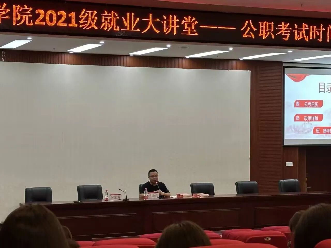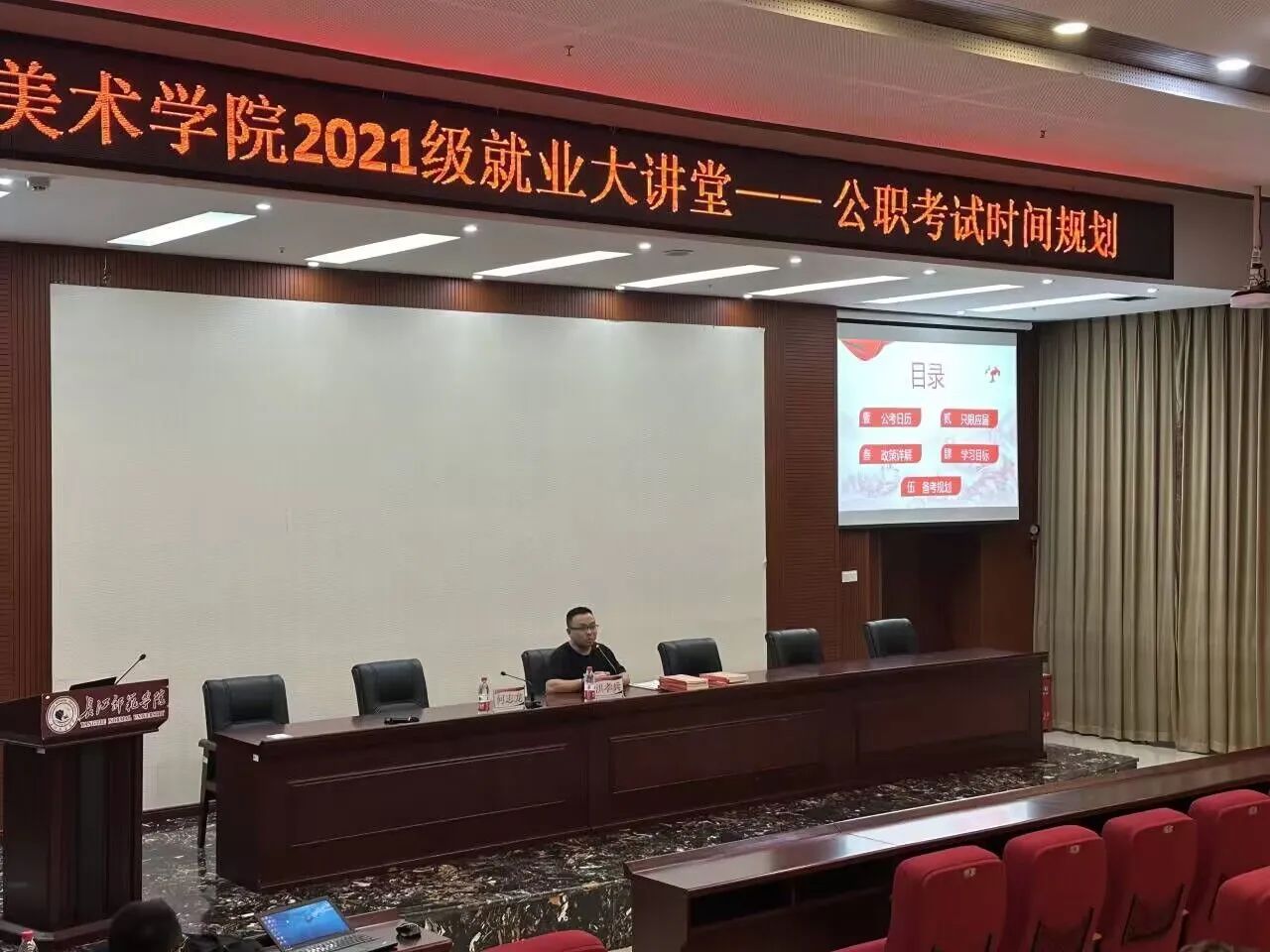 为了帮助即将面临就业的2021级学生更好地规划未来的公职考试,提升他们的备考效率和成功率。美术学院在2024年3月31日举办了一场以“就业大讲堂之公职考试时间规划”为主题的讲座。