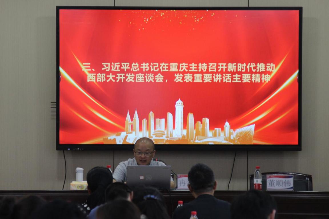 最后,冉校长全面解读了习近平总书记主持召开新时代推动西部大开发座谈会的重要讲话精神。他强调这次座谈会对于推动西部地区高质量发展具有里程碑意义。通过学习讲话精神,我们可以更加深刻地理解总书记对西部地区发展的战略部署和具体要求,从而为推动学校各项事业发展注入新的活力和动力。