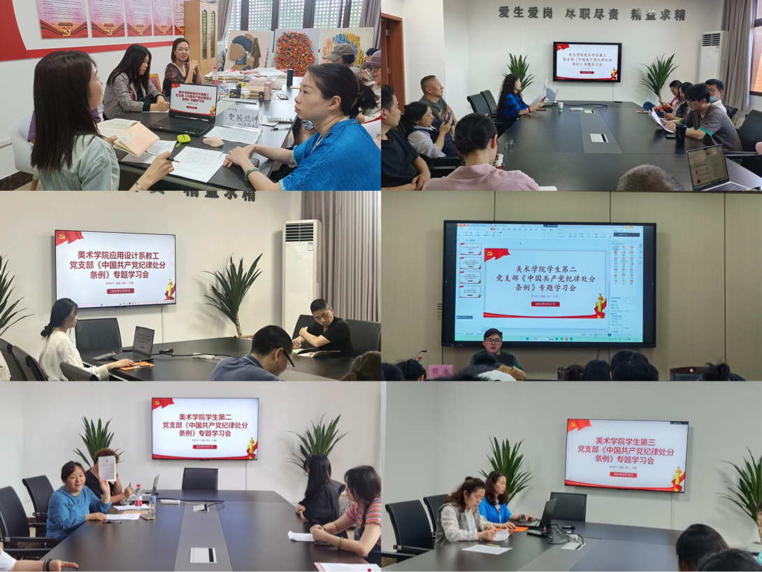 为全面加强党的纪律建设,进一步增强全体教师党员、学生党员开展党纪学习教育的思想自觉、政治自觉和行动自觉,教育引导党员干部学纪、知纪、明纪、守纪,5月底,美术学院各党支部在至善楼北楼515会议室召开了党纪学习教育第二次专题学习会,本次会议重点学习《中国共产党纪律处分条例》的四至六章内容,会议由各党支部书记主持,各党支部全体成员参加。