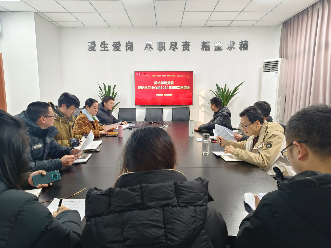 12月4日下午,美术学院党委在至善楼北楼515会议室召开了党委理论学习中心组第五次学习会,本次会议由学院党委书记董顺伟同志主持,学院党委委员、党支部书记和各系部主任参会。