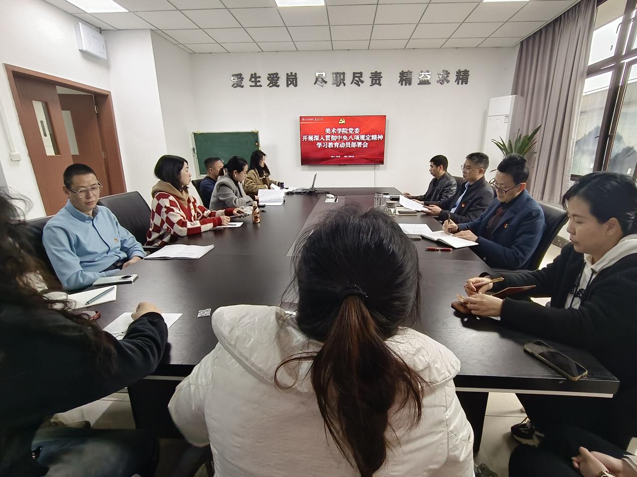 为全面落实党的二十大关于深化作风建设的部署要求,持续推动中央八项规定精神落地生根,美术学院党委于3月28日在至善楼北楼515会议室召开深入贯彻中央八项规定精神学习教育动员部署会。学院党委委员、科级干部、党支部书记、系部主任参加会议,党委书记傅小彪同志主持。