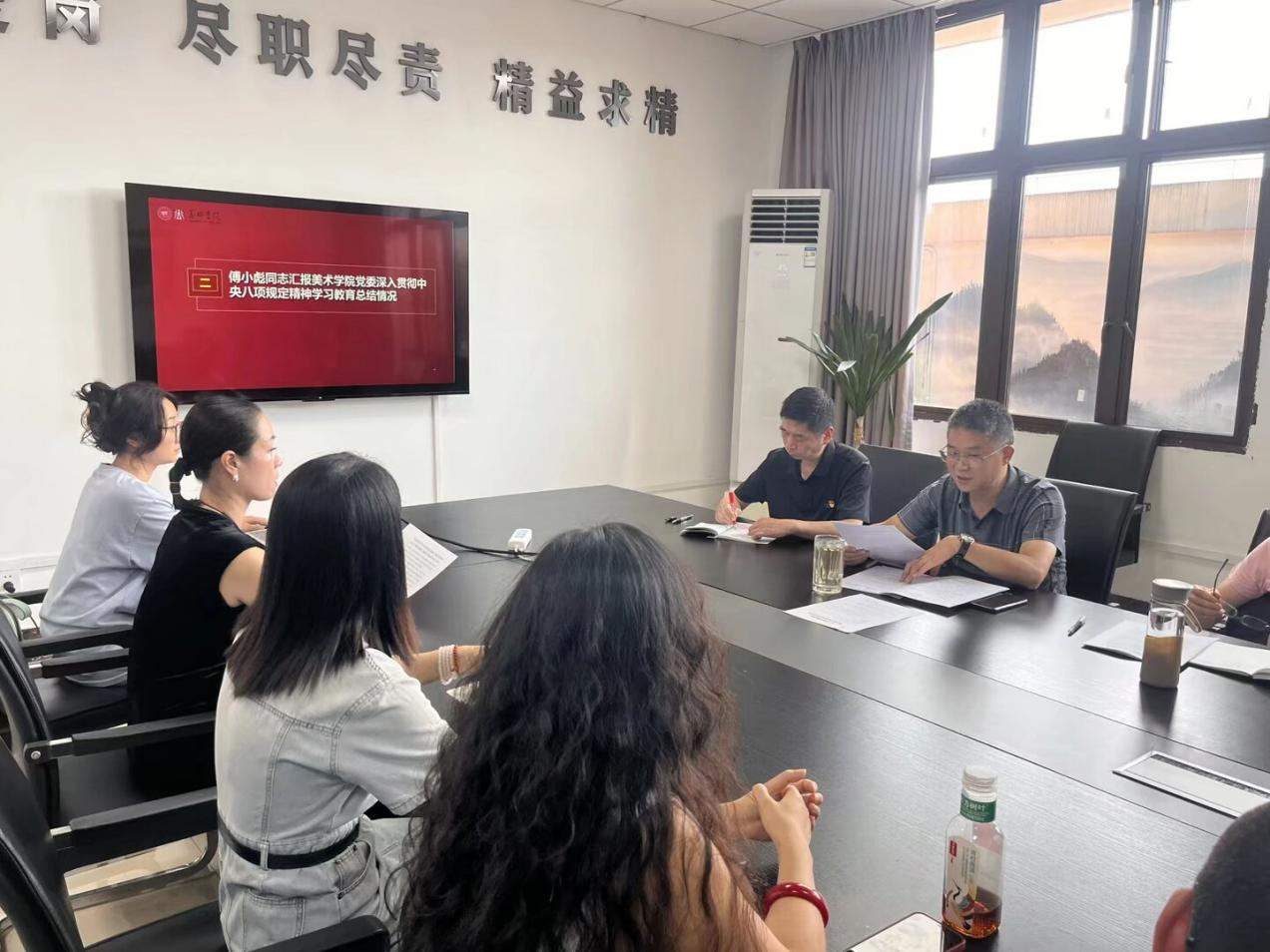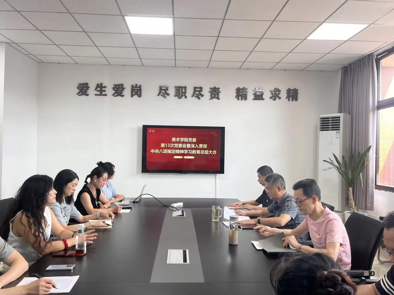 为进一步强化美术学院党委理论学习中心组成员对中央八项规定精神的深刻领会,9月17日,美术学院党委在至善楼北楼 515 会议室召开了第 13 次党委会暨深入贯彻中央八项规定精神学习教育总结大会。会议由傅小彪同志主持,美术学院党委委员、科级干部、系主任、党支部书记等参加了此次会议。