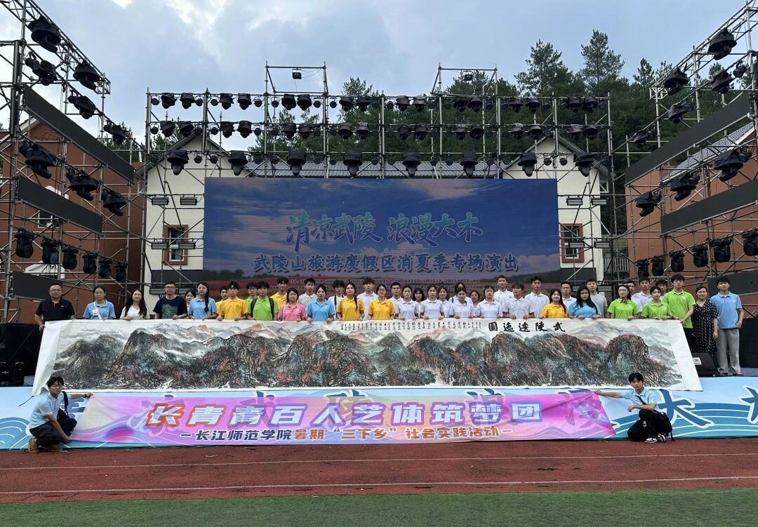 7月11日晚,长江师范学院“长青青”百人艺体筑梦团作为核心表演单位,参演了由涪陵区委宣传部、涪陵区文旅委等单位主办,涪陵区歌舞剧团与长江师范学院联合实施的“‘清凉武陵·浪漫大木’——‘北纬30°花园城市’武陵山旅游度假区消夏季专场演出”。此次活动在大木镇举行,是筑梦团“三下乡”活动的重要实践内容,团队以“青春献乡土·振兴谱新篇”为主题,通过传统艺术表演丰富乡村文化生活,展现7新时代大学生的青春风采,更将“三下乡”文化惠民的宗旨融入每一个节目,让中华优秀传统文化在乡土间焕发活力。