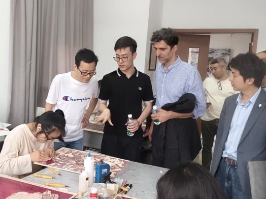 讲课结束后,莫塞那教授一行还深入版画教室和工作室进行悉心指导,莫塞那教授与师生亲切交流,对师生作品进行了细致入微的点评,并分享其宝贵的创作经验,拓宽了我院师生的艺术创作之路。