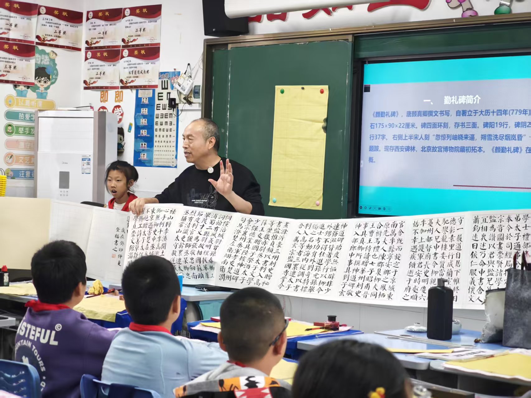 2.开展基础美术教育示范课、与附属小学开展联合教研活动:以校地合作围绕“美术课堂”主题,通过书法示范课,促进基础美术教学水平的提高,以此为契机联合附小美术教研组开展跨校教研活动,双方共同研讨了3节融合课的教学设计,确定了“高校与实习基地校”的协同育人机制,打通了师范人才单位与用人单位的良性互动,达成培养“理论-实践”的逻辑闭环。
