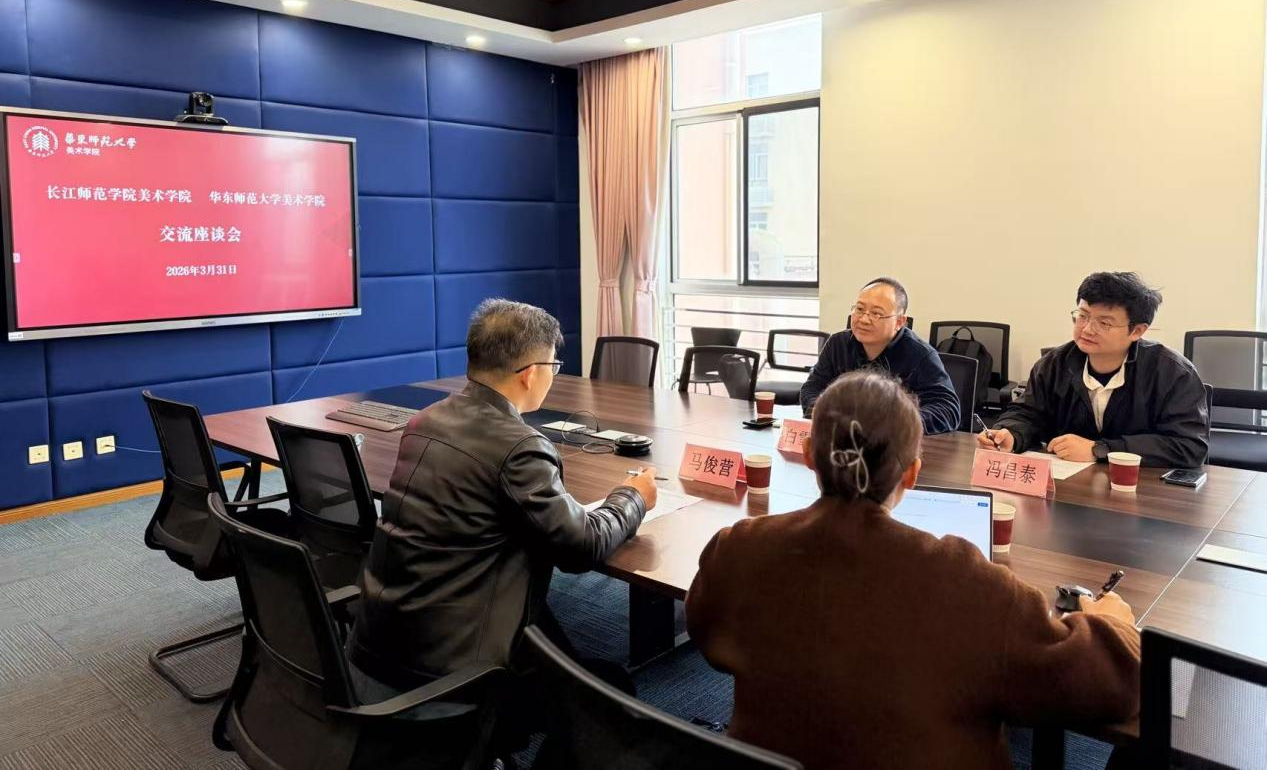 在华东师范大学美术学院,考察组与学院副院长马俊营、办公室主任昂庆等进行座谈交流。马俊营副院长详细介绍了学院基本情况、学科建设、人才培养、公共美育课程建设、实践教学体系构建等方面的经验做法,双方围绕美术类专业实践教学中心建设、公共美育课程体系优化、产教融合推进路径等内容深入探讨。白雪勇表示,华东师大美术学院在学科建设、美育教学、实践育人等方面的先进理念与成熟经验,为长江师范学院美术学院专业建设、教学改革提供了重要参考。冯昌泰提出,希望以此次交流为契机,搭建长期合作平台,推动双方在教学、科研、人才培养等领域深度协作。