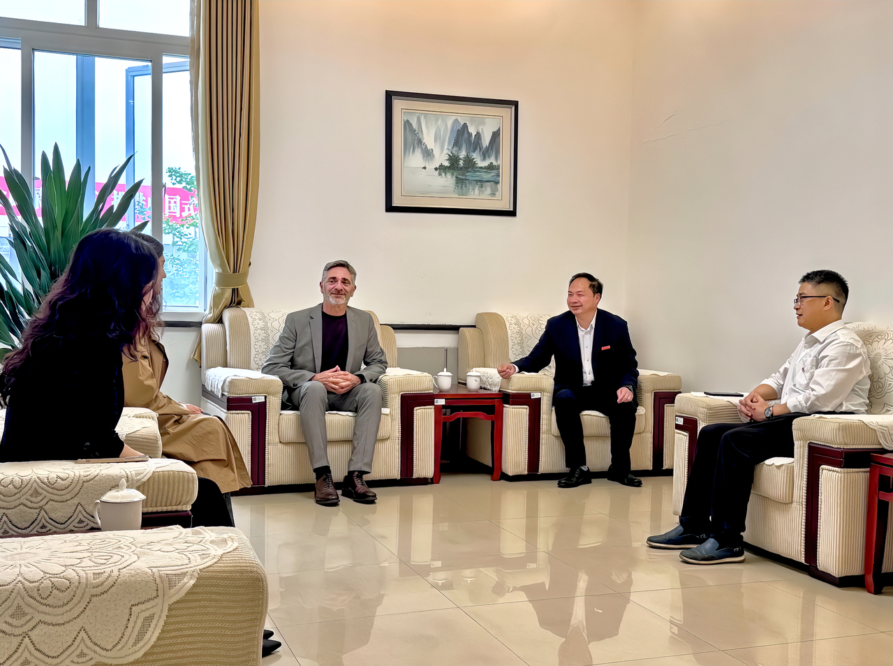 讲座结束后,学校党委书记黄大勇热情会见了皮萨诺教授一行,并参观了校园景观及汉崇美术馆。