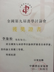 李象松老师 获奖证书