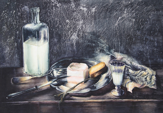 陈杨丽《早餐》水彩 50*70cm (2011级美术学专业) 获第四届大学生艺术展演活动二等奖 指导教师:董顺伟《...